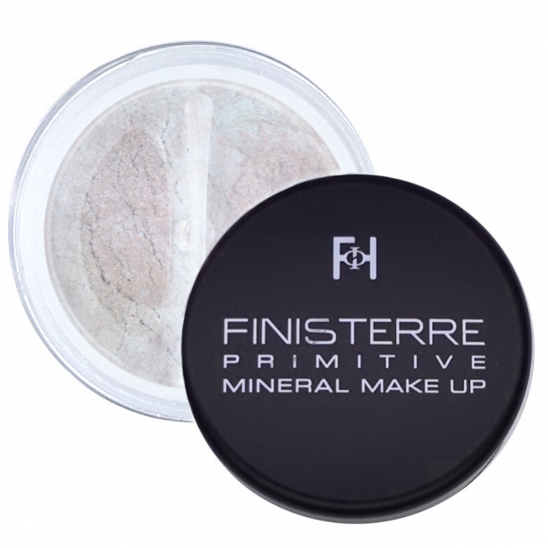 Ombretto minerale in polvere libera. Velo di luce sullo sguardo. Una impalpabile base color carne emana una iridescenza di pallido azzurro fiordaliso