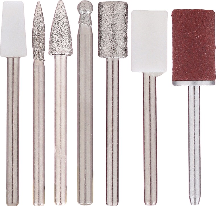 - Contiene 1 levigatrice, 6 punte, 1 mandrino e 3 smerigliatrici. (grano